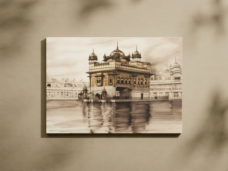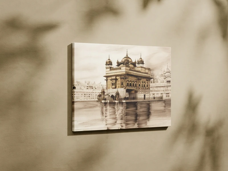Experience the serene aura of one of India’s most sacred shrines with our Golden Temple Canvas Wall Art. Captured in a timeless sepia tone, this artistic representation of Sri Harmandir Sahib (Golden Temple) radiates spiritual calm, devotion, and architectural grace.