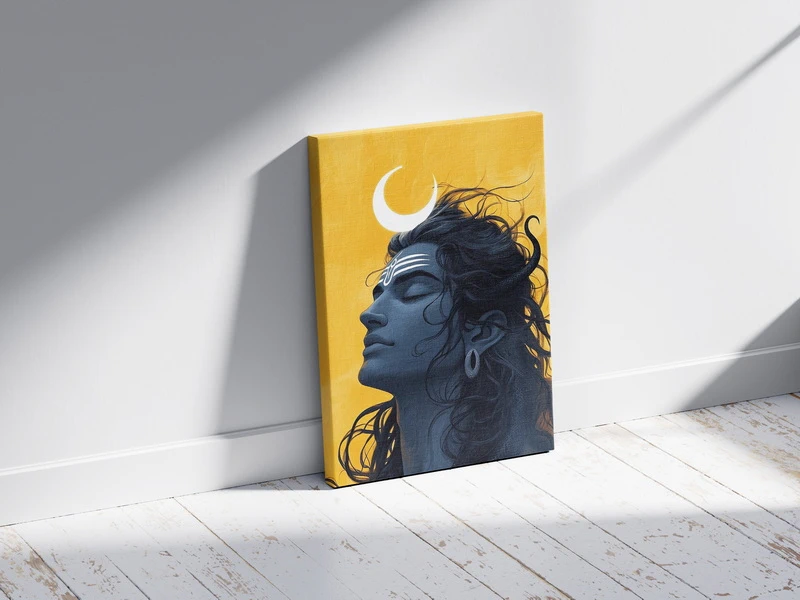 Bring peace, devotion, and divine energy into your home with this Lord Shiva Canvas Wall Art, a modern and minimalistic depiction of Mahadev in serene meditation. The artwork features Lord Shiva’s calm side profile, adorned with the sacred crescent moon, flowing hair, and the iconic tripundra tilak, set against a striking golden-yellow background.